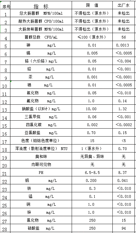 信息名稱 2020年2月出廠水檢測表 發布機構 白銀市給排水公司